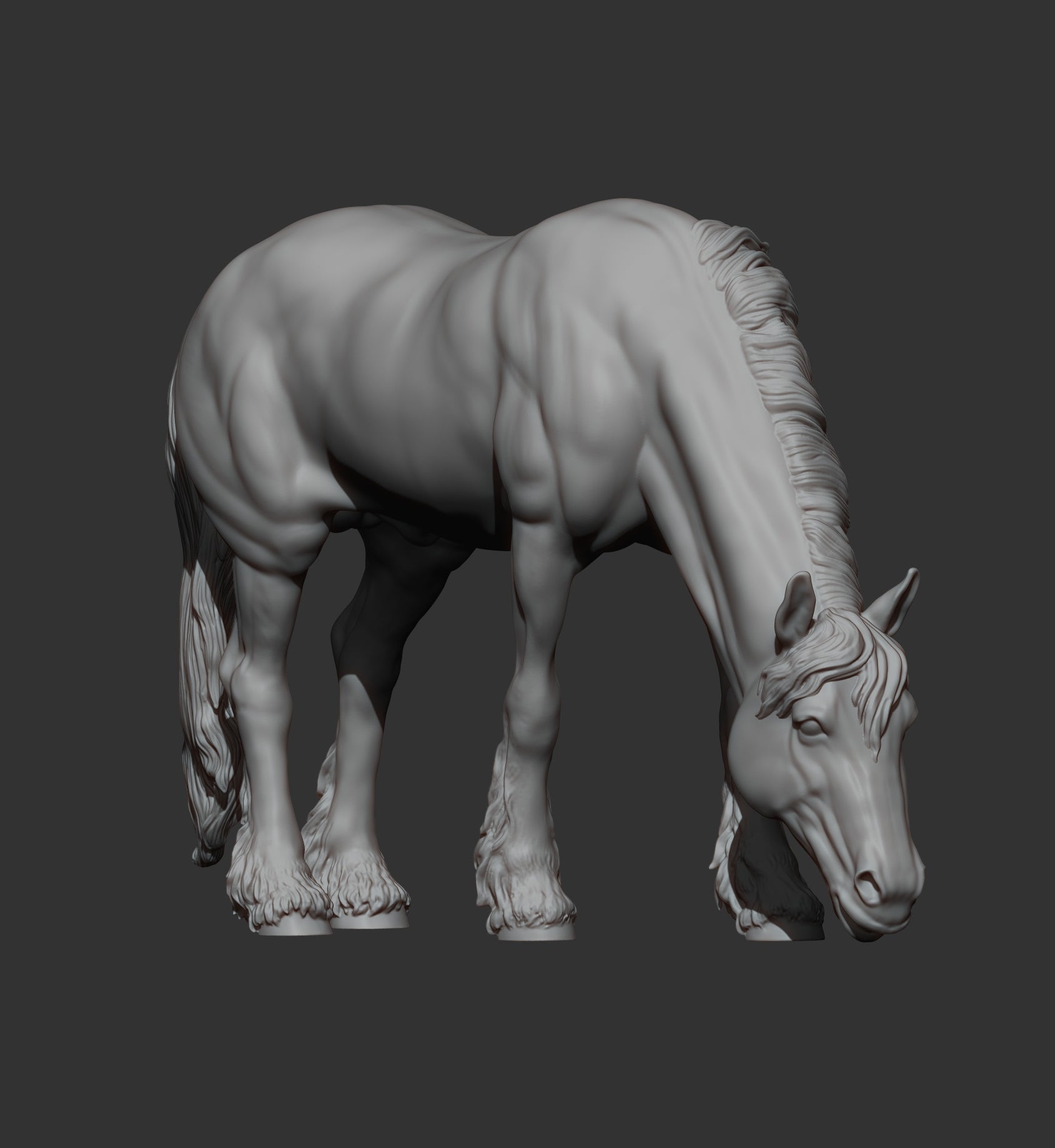 Friesian Horse Eats Grass – Unpainted 3D Print | ABS White Resin