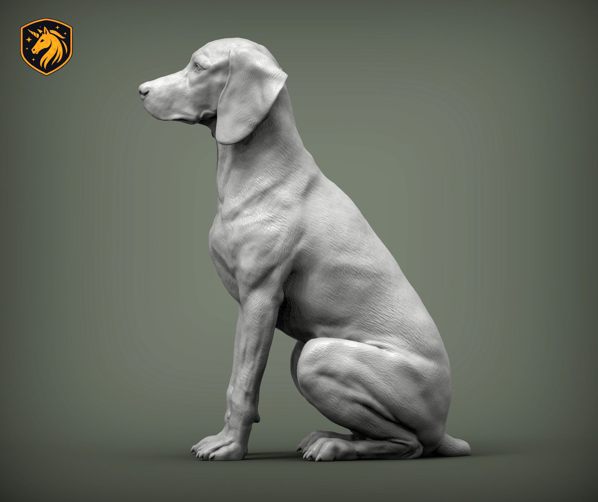 Hungarian Vizsla / Pointer (Sitting Pose) – Unpainted ABS Resin Model | Realistic Dog Sculpture